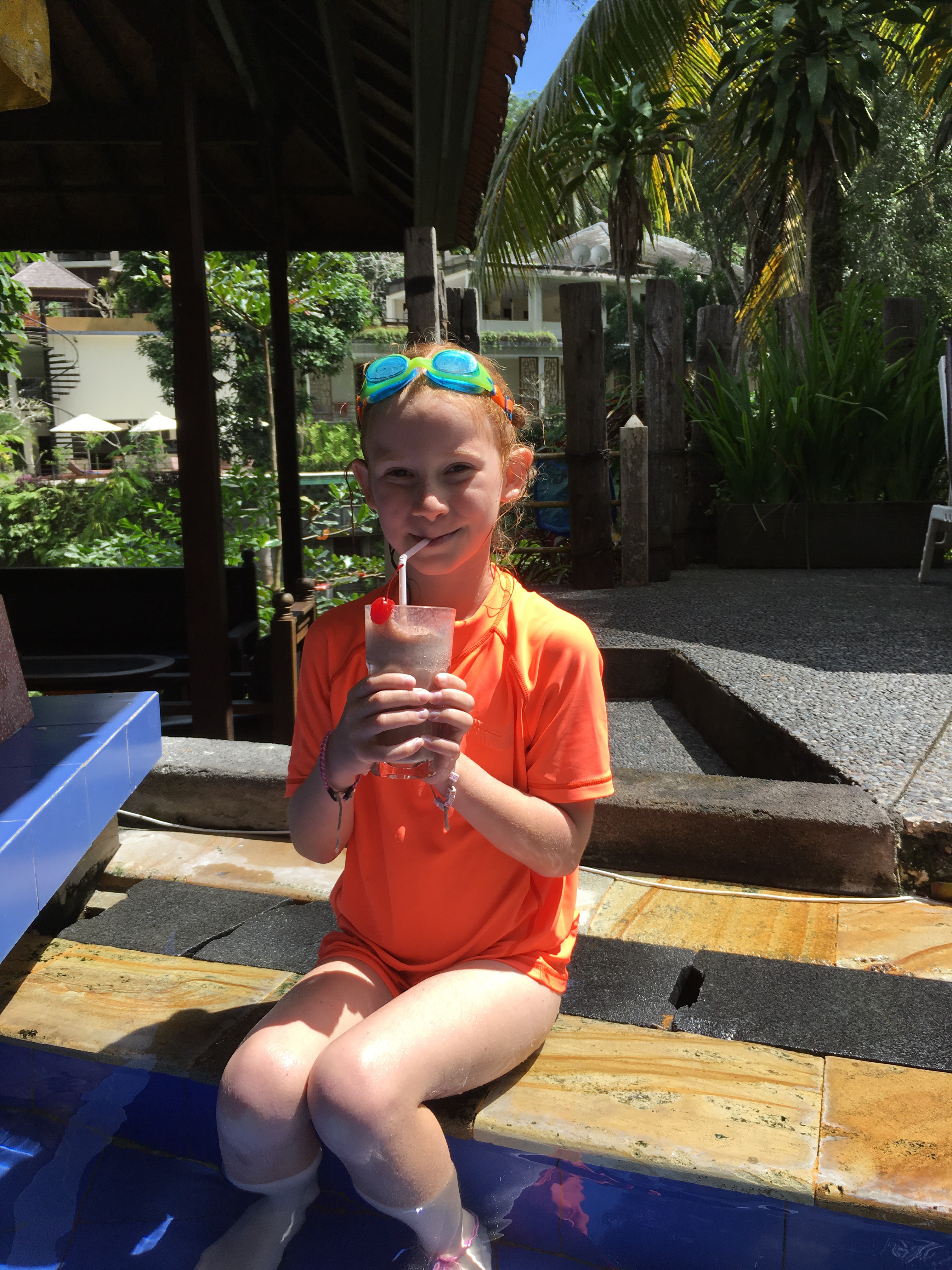 Our hotel is about a 10 minute drive from the centre. Most things seem to be in and around Monkey Forest Street. We were greeted with cocktails, a shoulder rub and a complimentary upgrade. They’ve given us the honeymoon suite here which is fab and is huge, 2 floors so we can have a floor each! Not sure if they realised I was coming with a 7 year old!