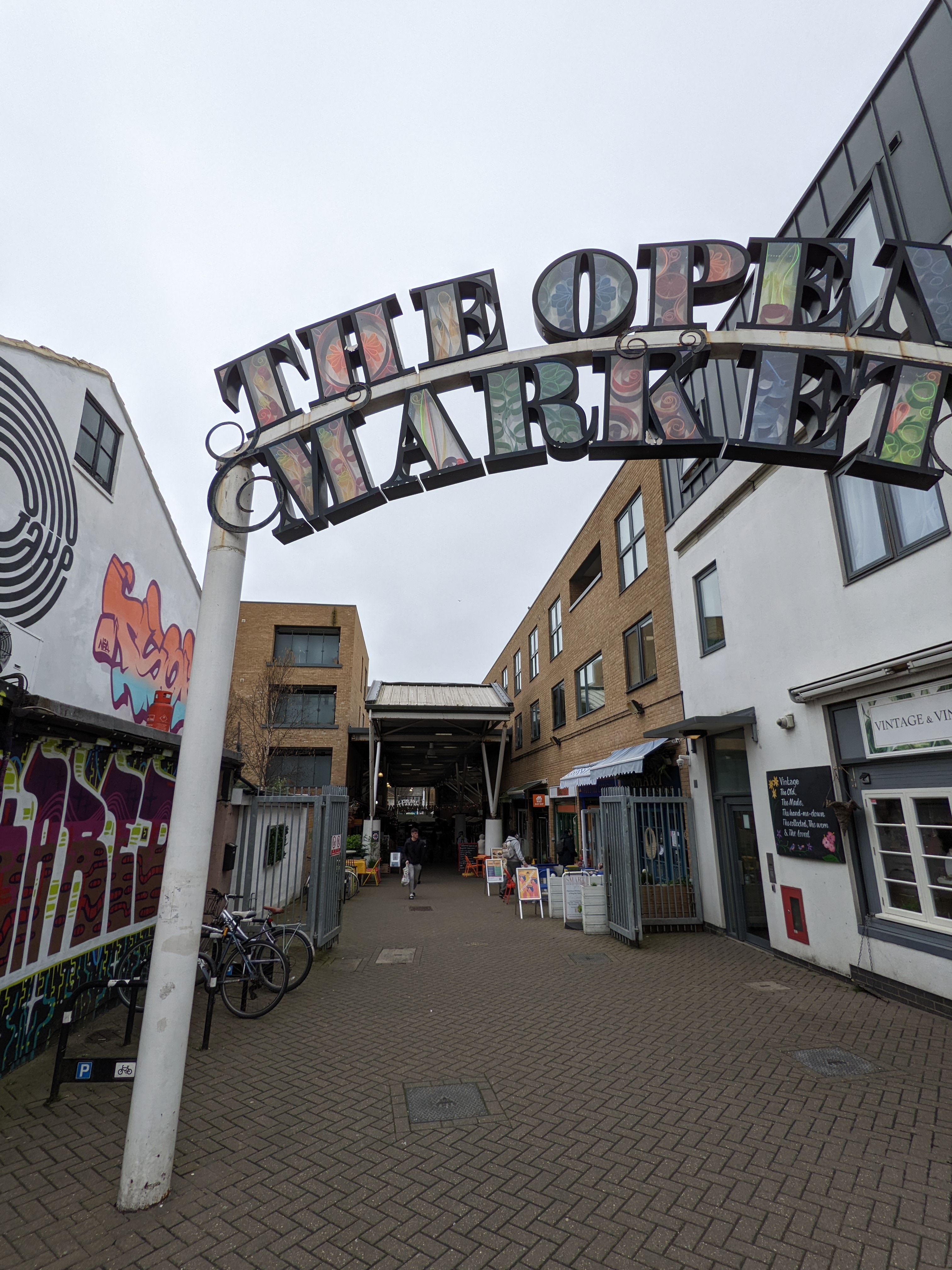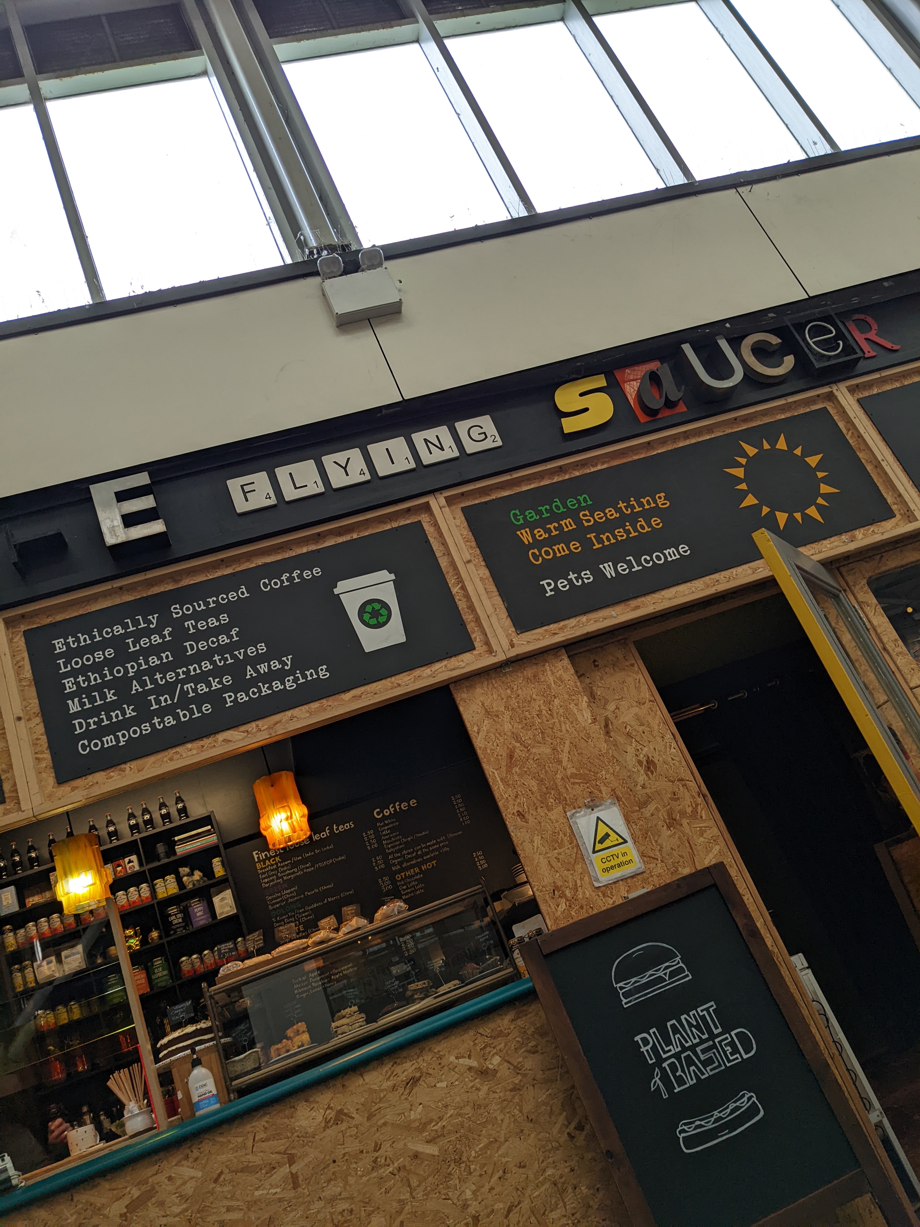 We hopped off the train and headed about 8 minutes behind the station to the Open Market, a small undercover market with food, candle, record and clothing stalls. We had some tasty homemade sausage rolls from The Flying Saucer.